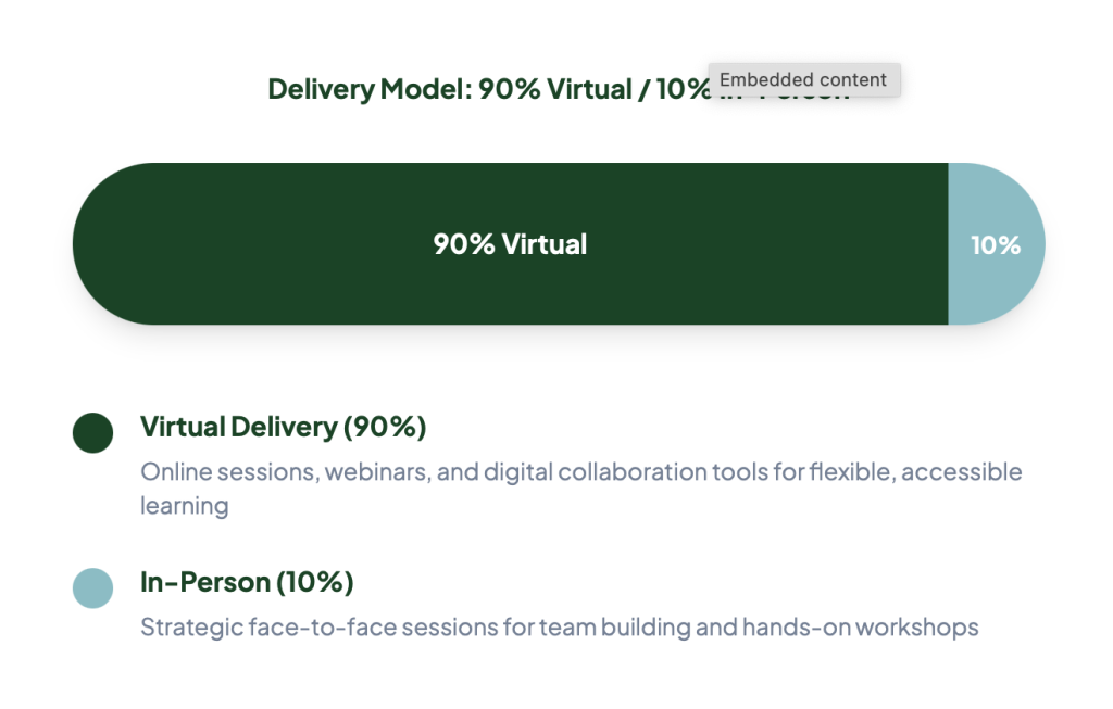 ✔ Delivery Model: 90% Virtual / 10% In-Person